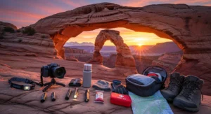 Complete packing list for a photography-focused night hike to Mesa Arch at sunrise