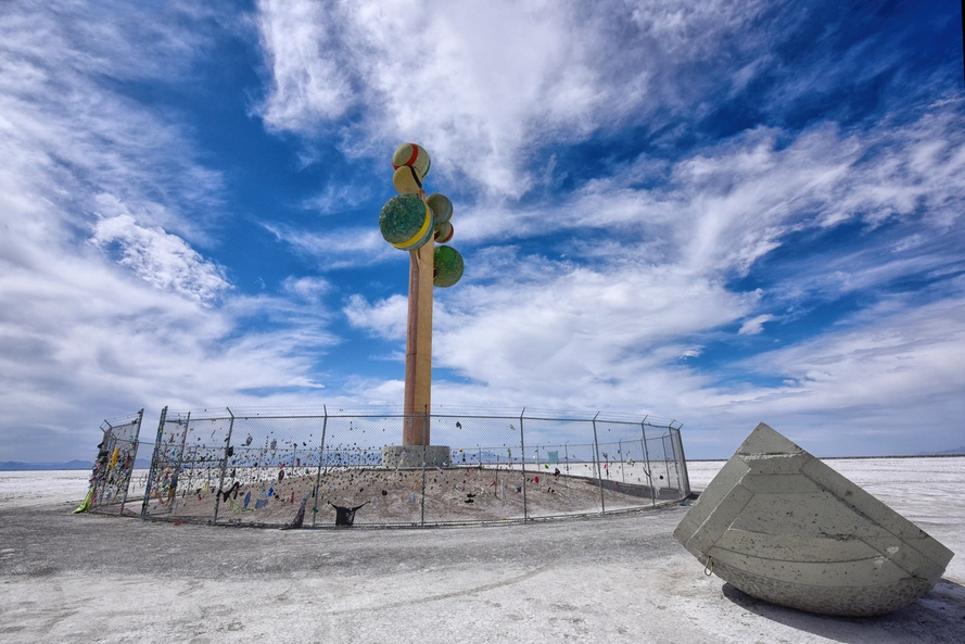 30 min – Tree of Utah and Blue CanalOur next stop is the monumental Tree of Utah — an 85-foot (26 m) psychedelic sculpture created by Swedish artist Karl Momen. Standing in the desert since 1986, it serves as a hymn to life rising above the vast salt wilderness. Its vibrant spheres emerging from the endless white surface create a surreal, almost otherworldly scene. We’ll then visit the Blue Canal, a remarkable engineering project where bright turquoise water cuts through the salt flats like a shimmering ribbon. It’s not only an iconic photo spot but also a testament to human ingenuity — this very canal helped protect Salt Lake City from catastrophic flooding in the 1980s.